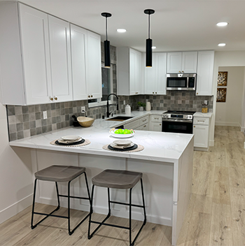 We can help with vinyl and luxury vinyl floors, laminate and hardwood floors, carpet installation, ceramic and porcelain floors, kitchen and bathroom remodels, drywall work, painting services, fireplace remodels, plumbing services, repiping, and much more!